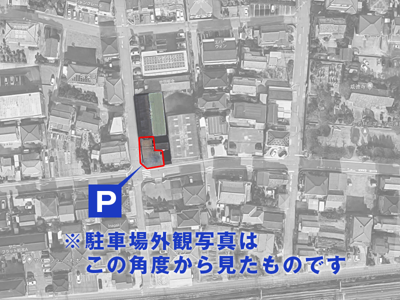 最初の交差点を右折して駅のすぐ北を通る道を約1.4km西進した左側。